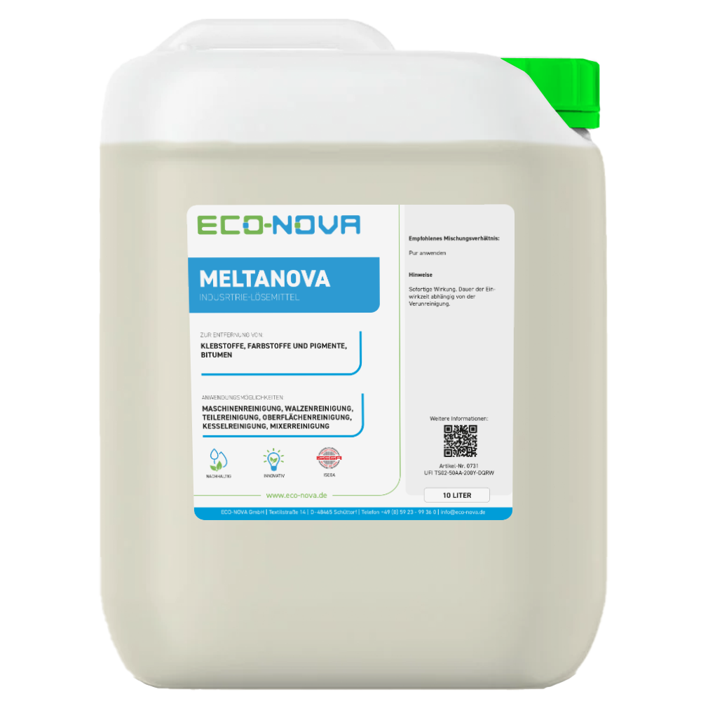 Meltanova ist ein leistungsfähiges Lösemittel zur Entfernung von Klebstoffen, Farbstoffen und Pigmenten oder Bitumen.